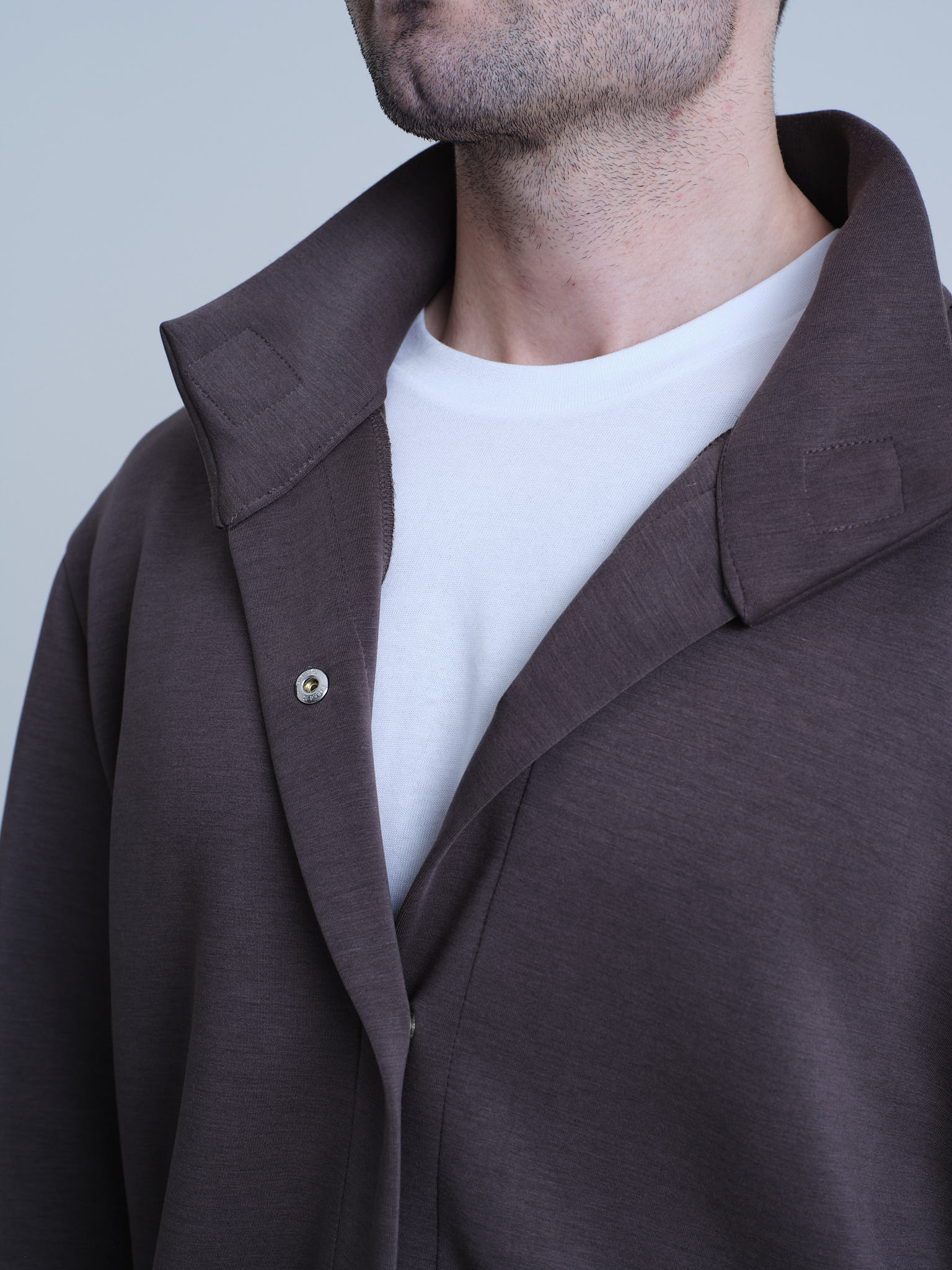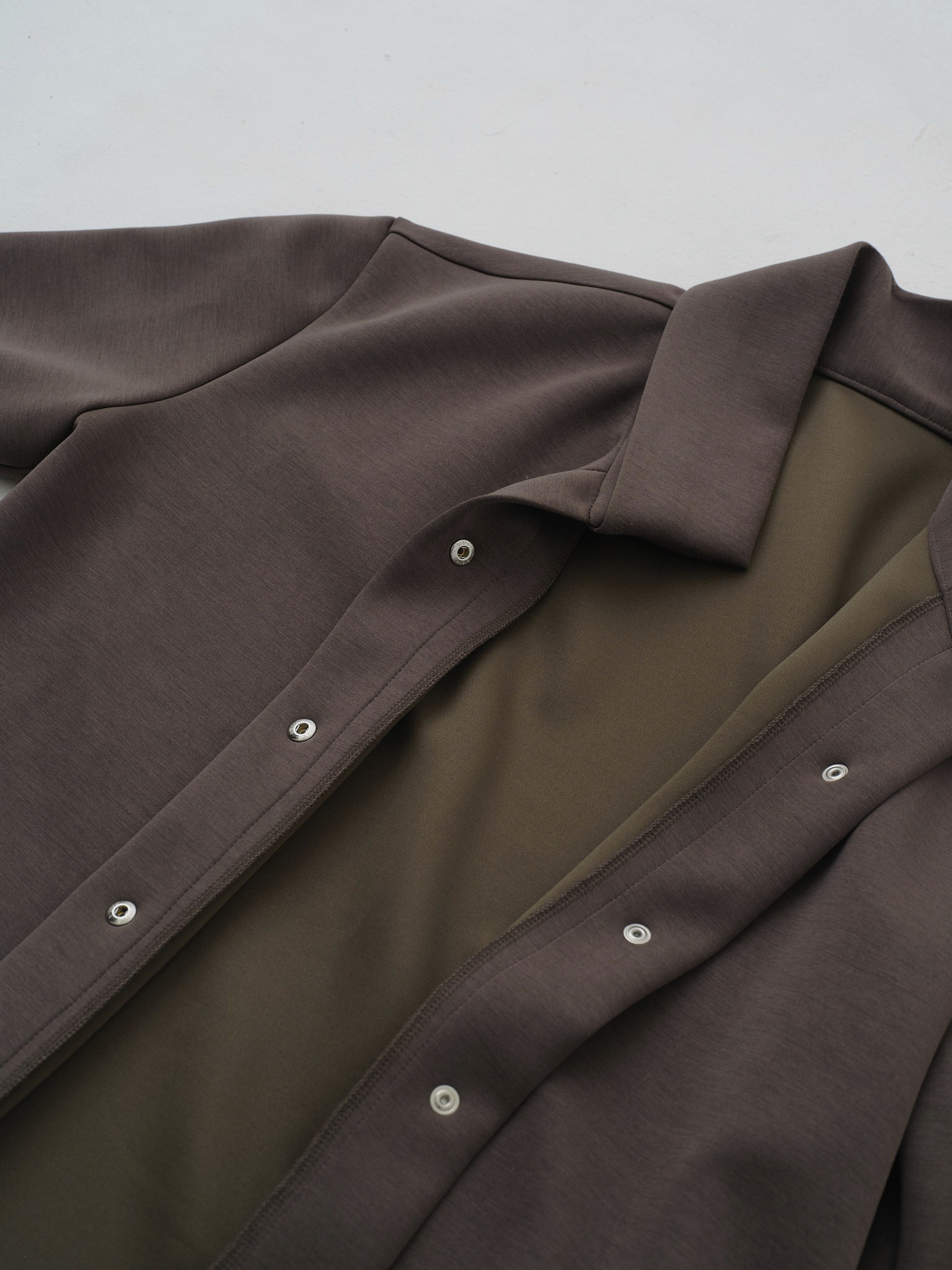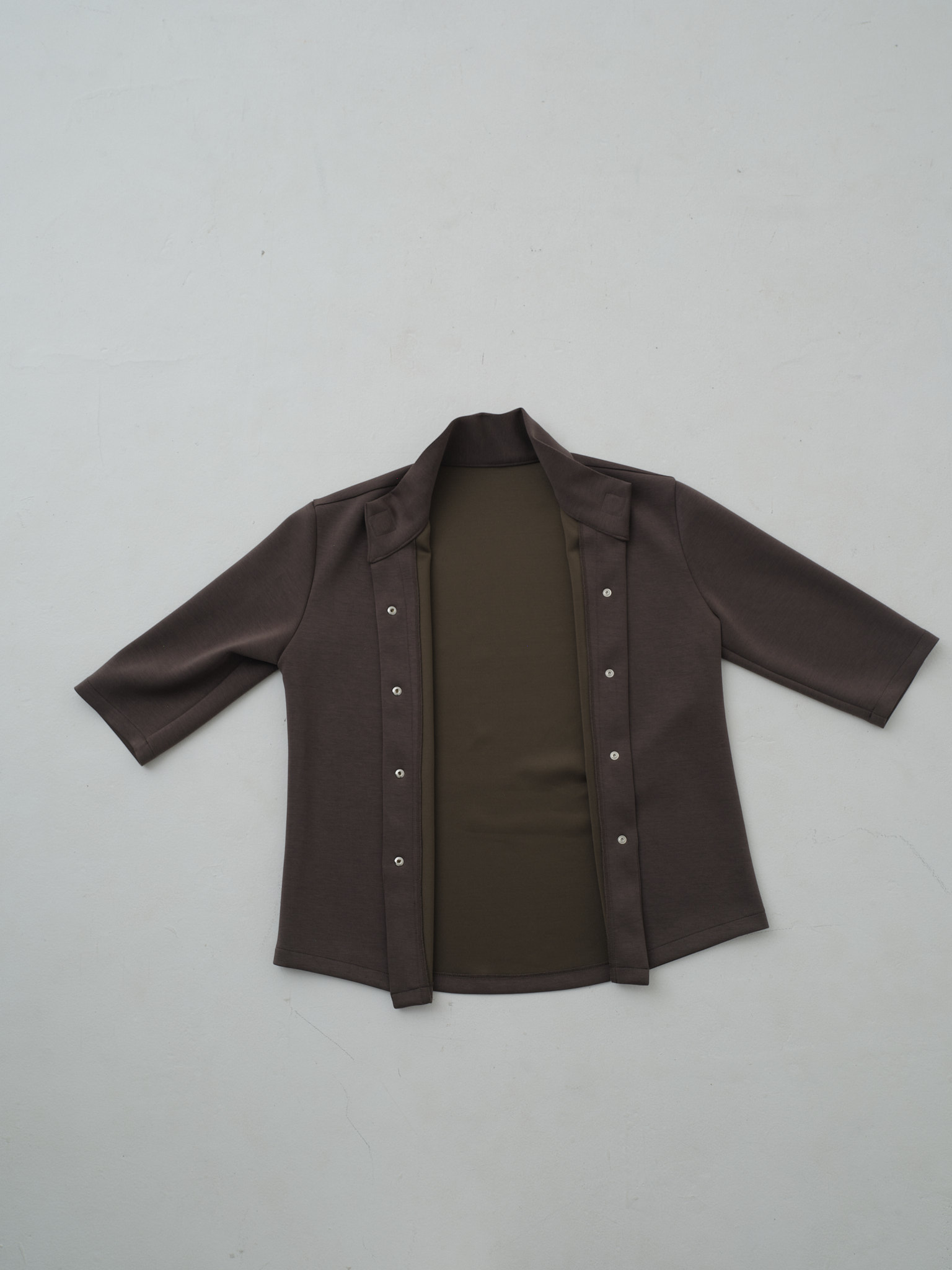 留めたときは全体が整い、開くと動きが自然に広がります。シーンや一日の流れに合わせて着方を変えられることで、日常に無理なく溶け込み、気負わず着続けられる一着。